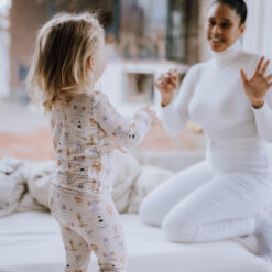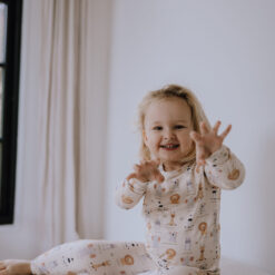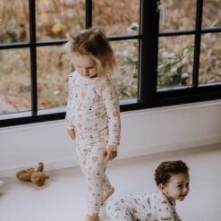 Blødt pyjamassæt i bambus til baby og små børn – komfortabelt nattøj designet til rolig søvn og fleksibel pasform.